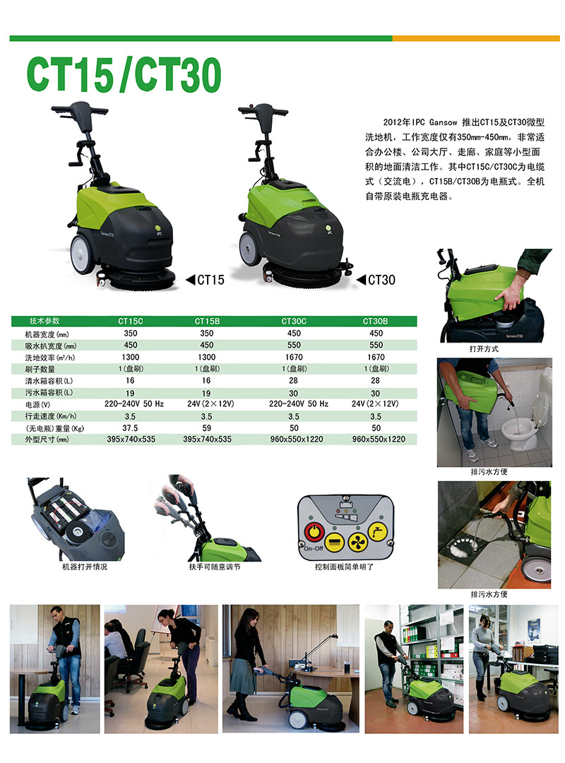 產(chǎn)品介紹:意大利IPC 手推式洗地機CT15是一款非常實用的洗地機。作為進口洗地機的該款微型洗地機憑借其小巧的身姿,具有洗地吸干一次完成,不論是在經(jīng)常需要打掃但擺放滿各種儀器的實驗室,或滿是過道狹窄的辦公室等CT15洗地機都能夠游刃有余。