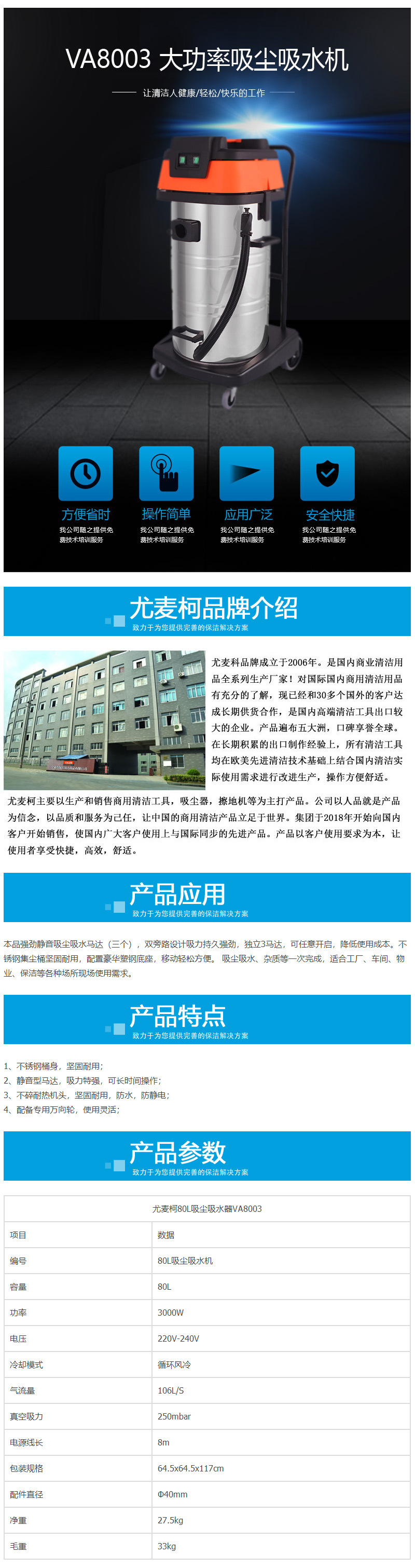 - 商品名稱: 尤麥柯80L吸塵吸水器VA8003
