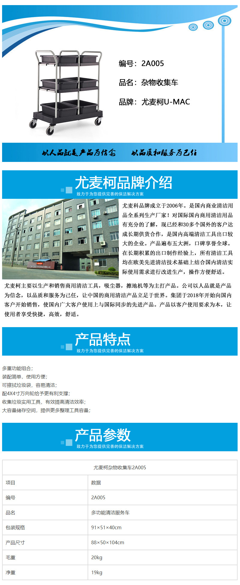 多重功能組合;裝配簡(jiǎn)單,使用方便;可擦拭垃圾袋,容易清潔;配4X4寸萬(wàn)向輪給予更有利支撐;收集垃圾實(shí)用工具,有效提高清潔效率;大容量?jī)?chǔ)存空間,提供更多整理工具容量;