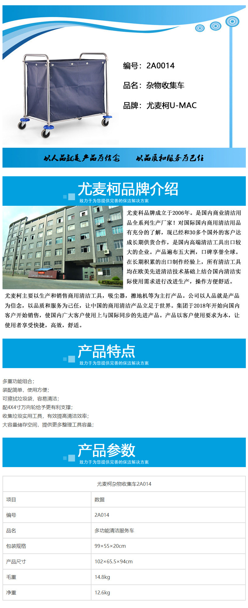多重功能組合;裝配簡單,使用方便;可擦拭垃圾袋,容易清潔;配4X4寸萬向輪給予更有利支撐;收集垃圾實用工具,有效提高清潔效率;大容量儲存空間,提供更多整理工具容量;