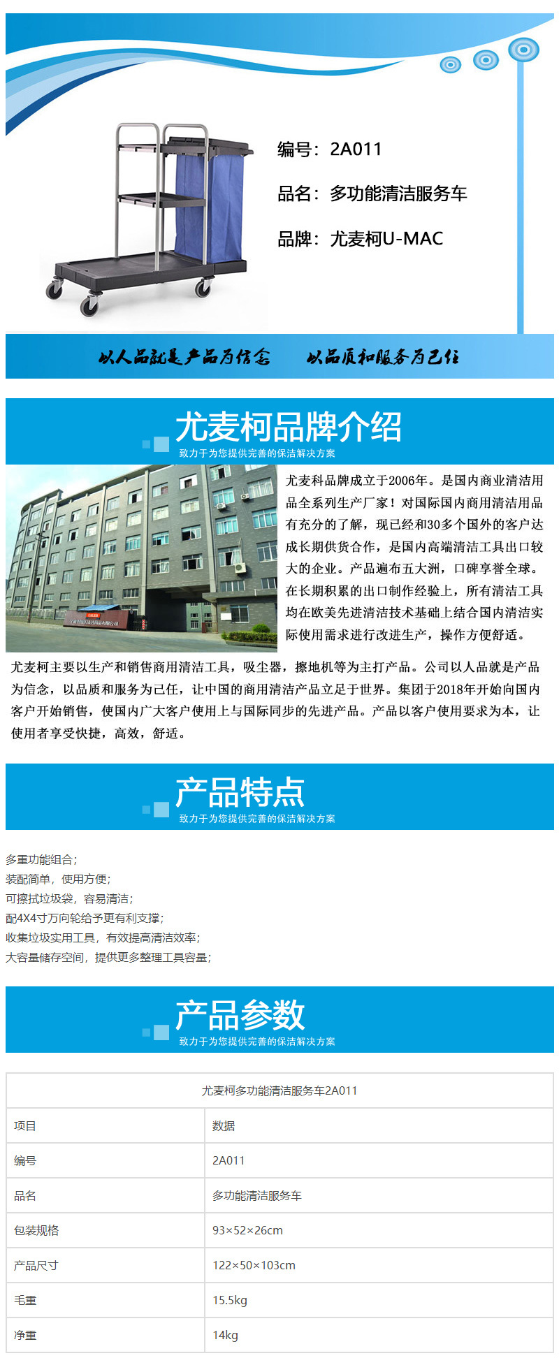- 商品名稱: 尤麥柯多功能清潔服務車2A011