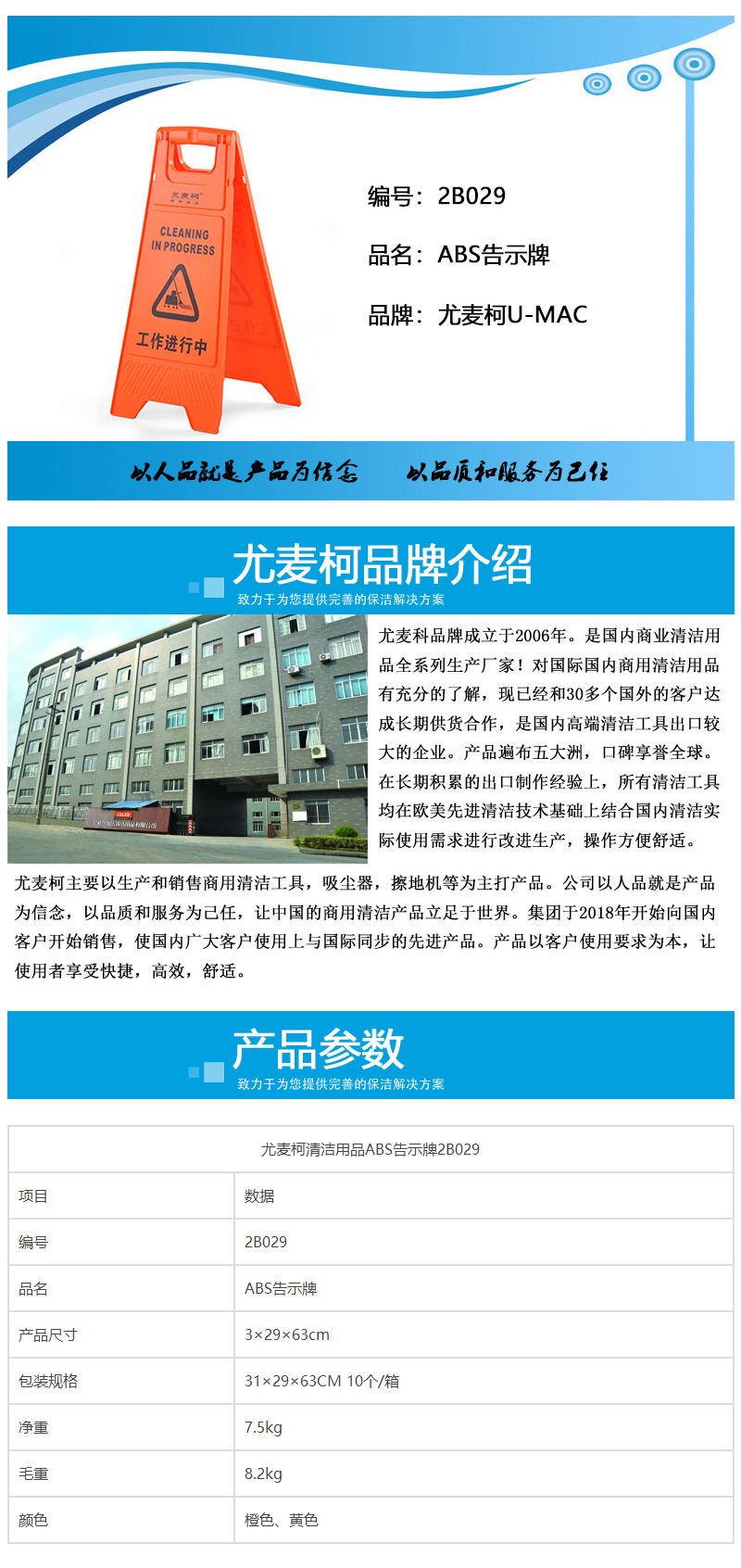 尤麥柯清潔用品ABS告示牌2B029