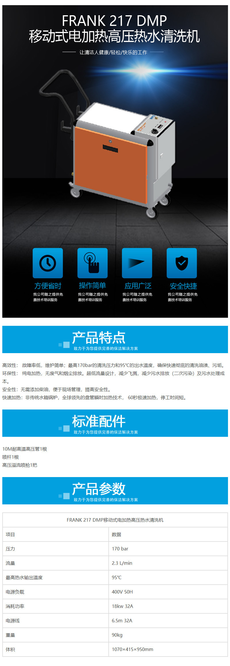 - 商品名稱: FRANK 217 DMP移動式電加熱水高壓清洗機